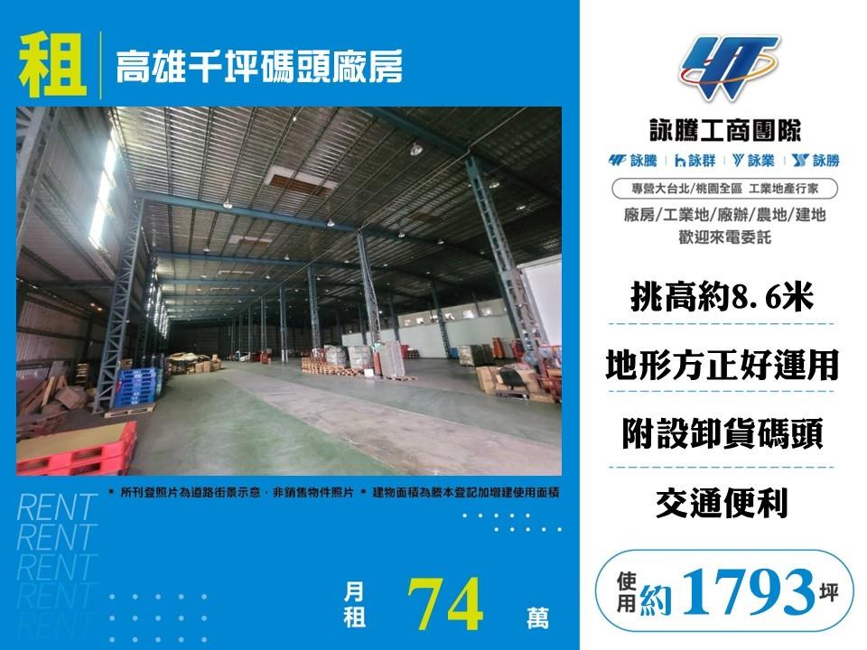 高雄/挑高8.5米/碼頭/倉庫廠房 • 高雄廠房工業地買賣/建地/徵收農地/廠房出租