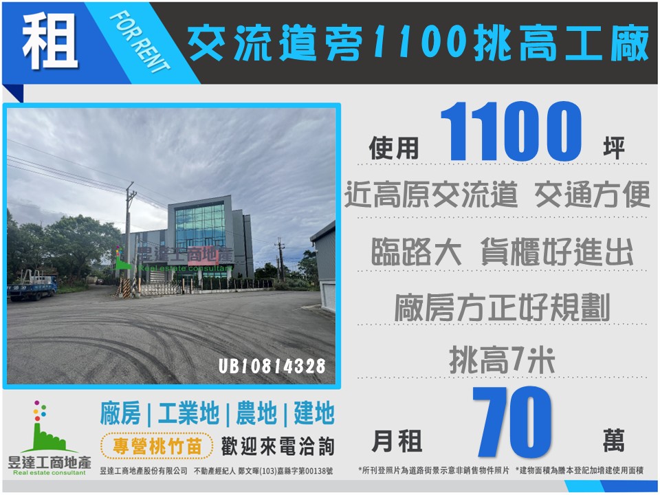 龍潭小坪數挑高鋼構廠房/工業地廠房買賣租賃